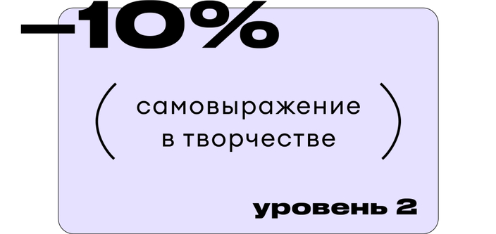 Самовыражение в творчестве - второй уровень дисконтной программы, при общей сумме покупок от 10000 рублей Ваша скидка составит 10%