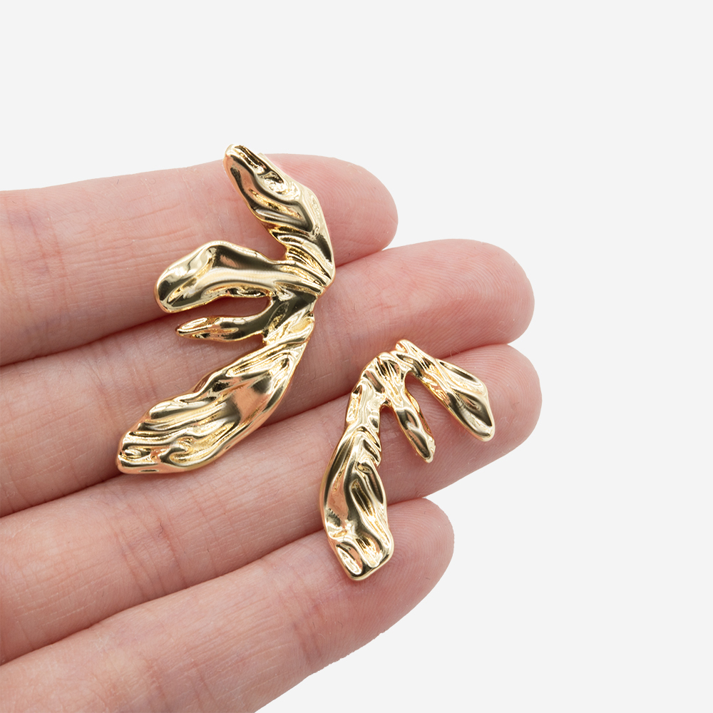 Ассиметричные серьги "Крылья", 24,5*15мм, 35*17мм, позолота