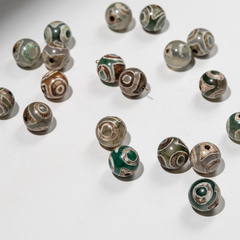 Круглая бусина Дзи из агата, 10мм. Отверстие 1мм. Полосы символизируют исполнение желаний.
