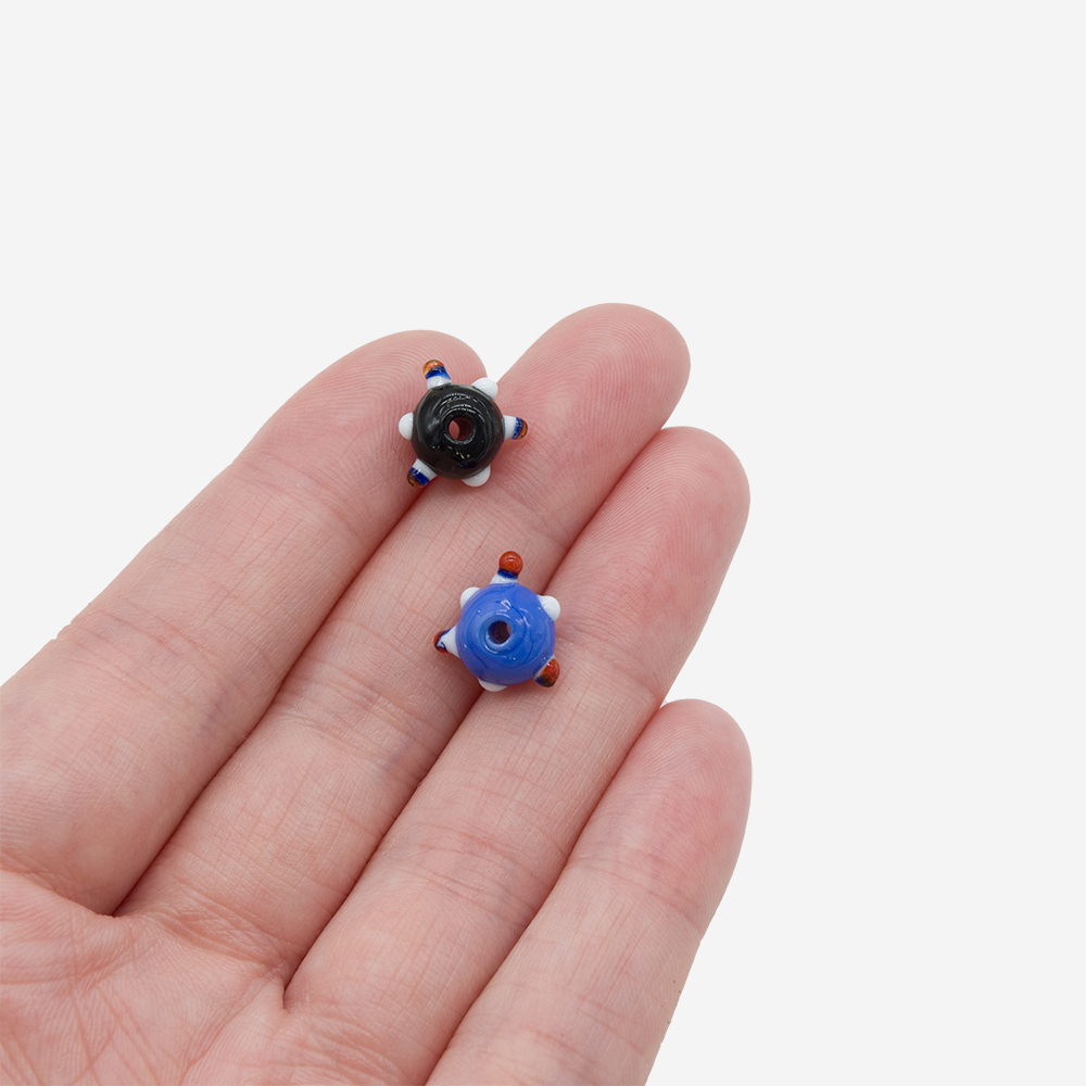Бусины изготавливаются вручную, на поверхности и в районе отверстия могут быть наплывы и неровности, внутри - пузырьки воздуха, что не является браком.
