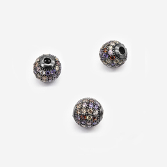 Бусина имеет диаметр 6мм, отверстие 1,5мм, родирование, украшена разноцветными фианитами.