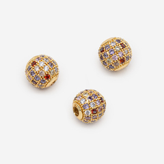 Бусина имеет диаметр 8мм, отверстие 1,5мм, позолота, украшена разноцветными фианитами.