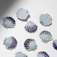 Бусина в форме ракушки, 28,6*31,8мм, бордово-голубая, глазурированный фарфор
