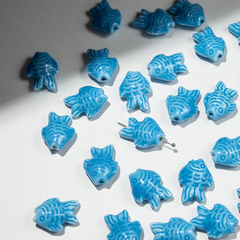 Бусина в форме рыбки из глазурированного фарфора (керамика), белого цвета. Размер 19*15мм, отверстие 2мм.