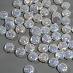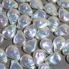 Бусины в форме жемчужины со смещенным боковым отверстием из композитного материала с радужным покрытием и зеркальным эффектом. Размер бусины 13*11мм, отверстие 1мм.