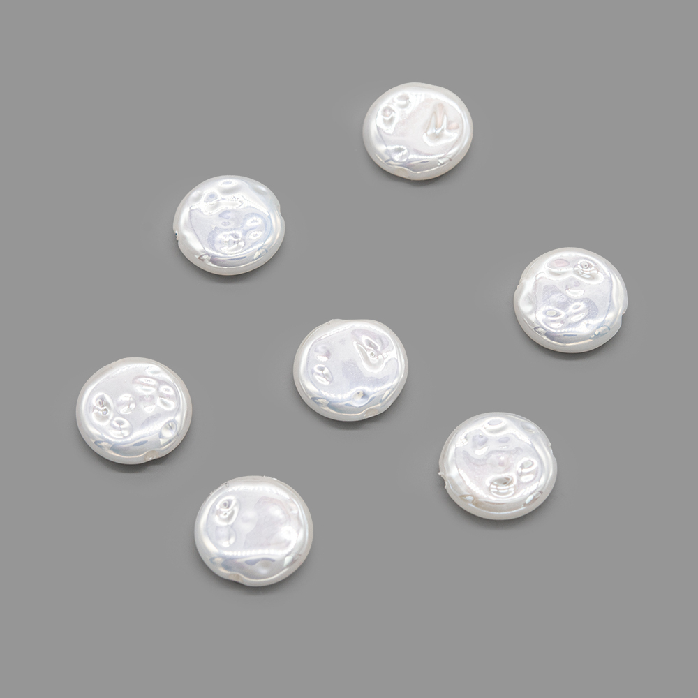 Бусина-жемчужина с яркими переливами в форме монетки, 12мм