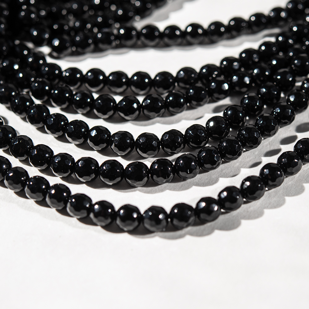 Черный агат натуральный, шар 6мм, микроогранка.