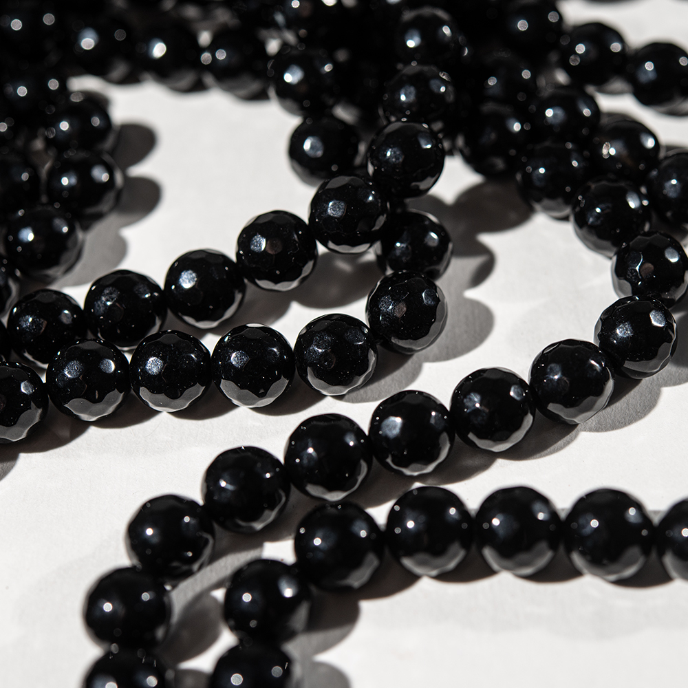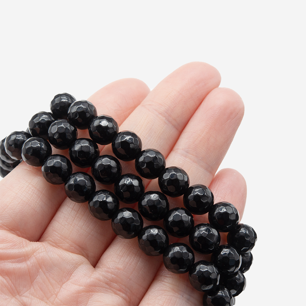 Черный агат натуральный, бусины в форме шара, микроогранка, 8мм