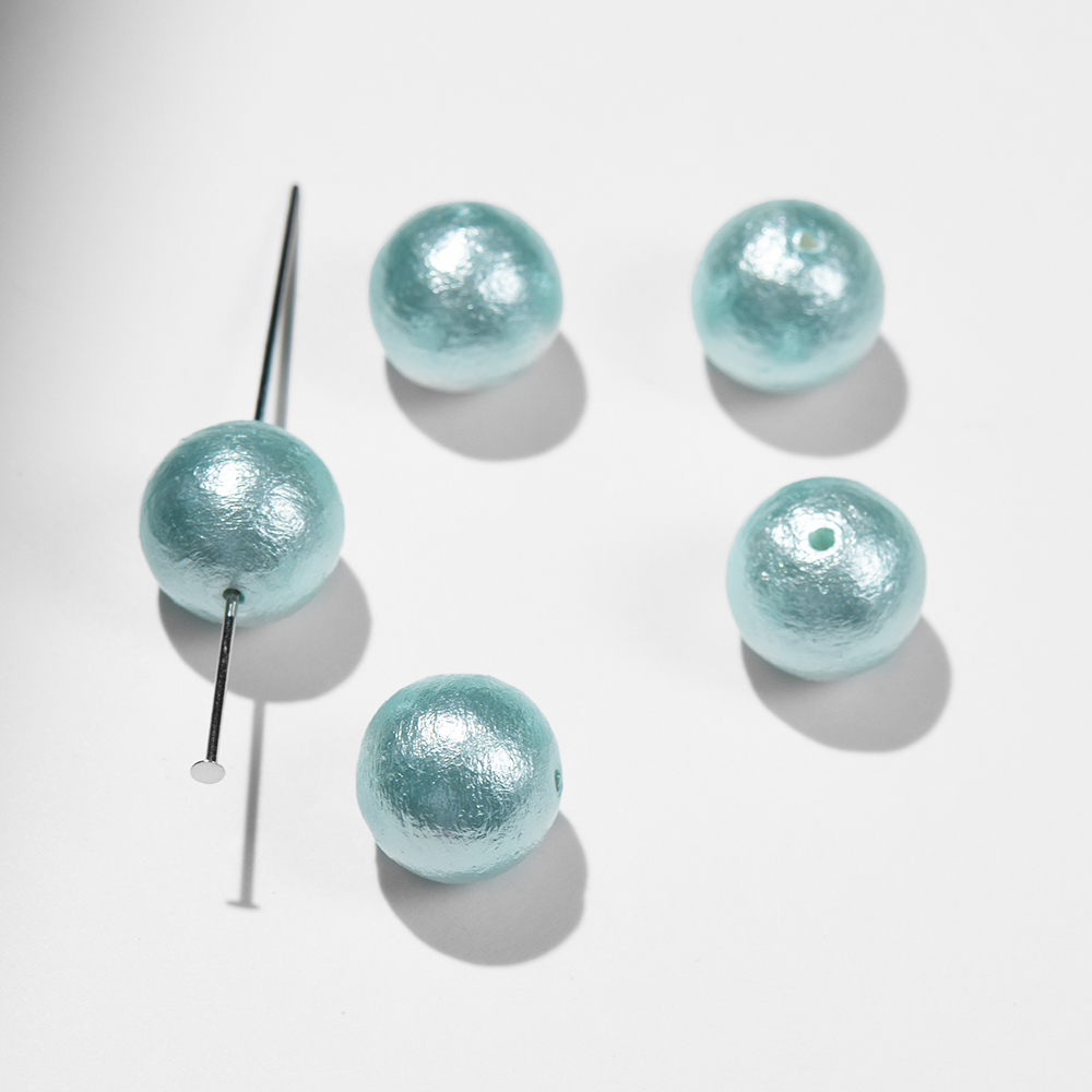 Хлопковый жемчуг, оттенок "Aqua", шар 14мм, сквозное отверстие