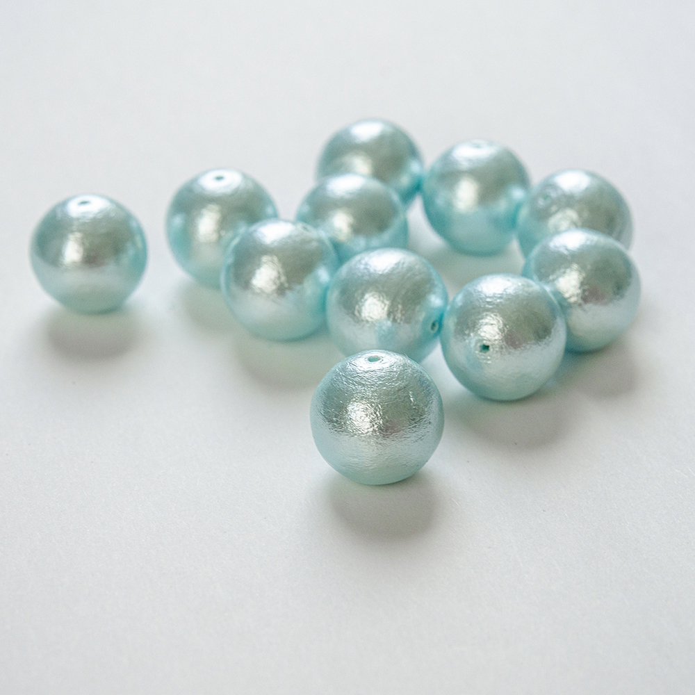 Бусины хлопкового жемчуга отличаются невероятной легкостью, так как состоят из спрессованных хлопковых волокон, окутанных жемчужным покрытием. Жемчужины обладают аутентичной, немножко неровной поверхностью, что придает им особый шарм.