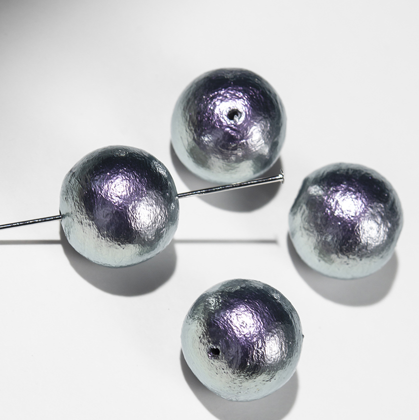 Бусины хлопкового жемчуга отличаются невероятной легкостью, так как состоят из спрессованных хлопковых волокон, окутанных жемчужным покрытием. Жемчужины обладают аутентичной, немножко неровной поверхностью, что придает им особый шарм.