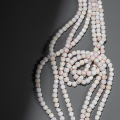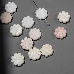 Бусины в форме клевера из раковины розовой королевской ракушки - ценного панамского моллюска. Оттенок цветов очень нежный, от молочно-белого до персикового и розового.