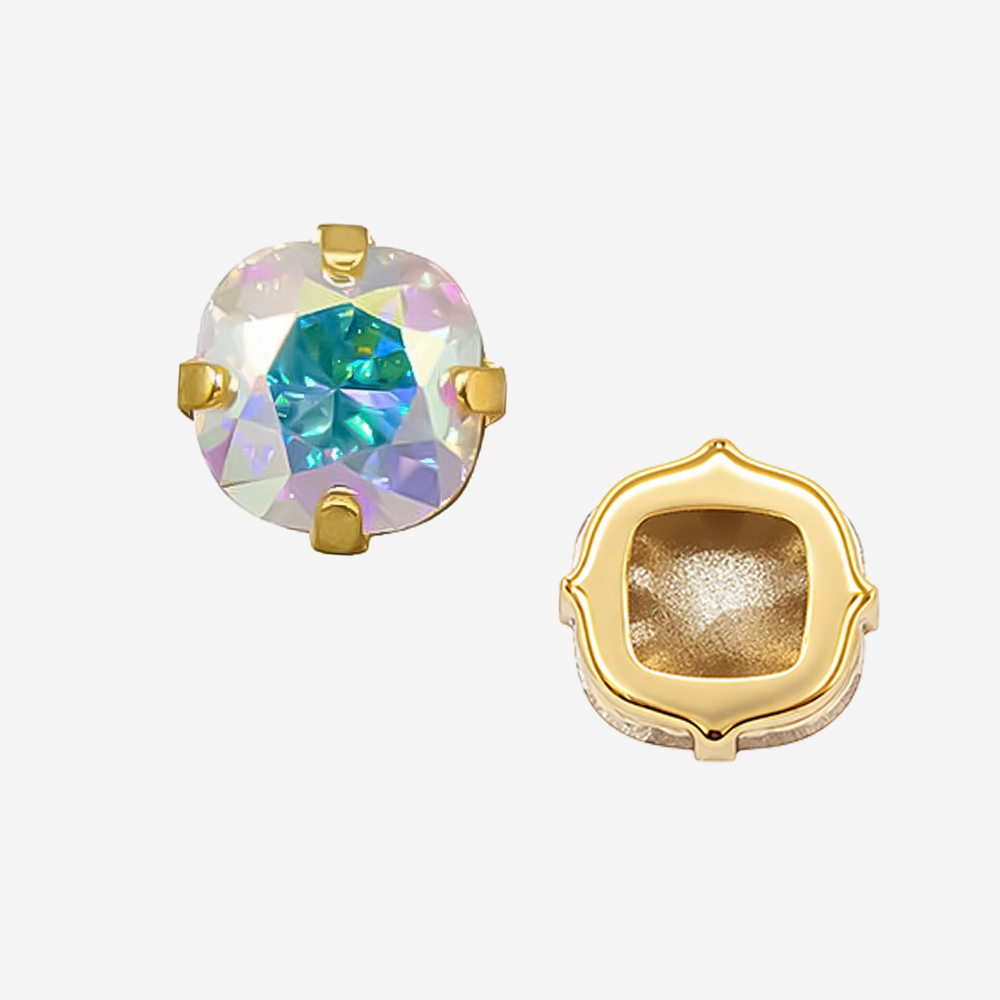 Кристалл Кушон (Сushion) в цапах, оттенок "Северное Сияние"/"Aurore Boreale", 9,2мм, позолота