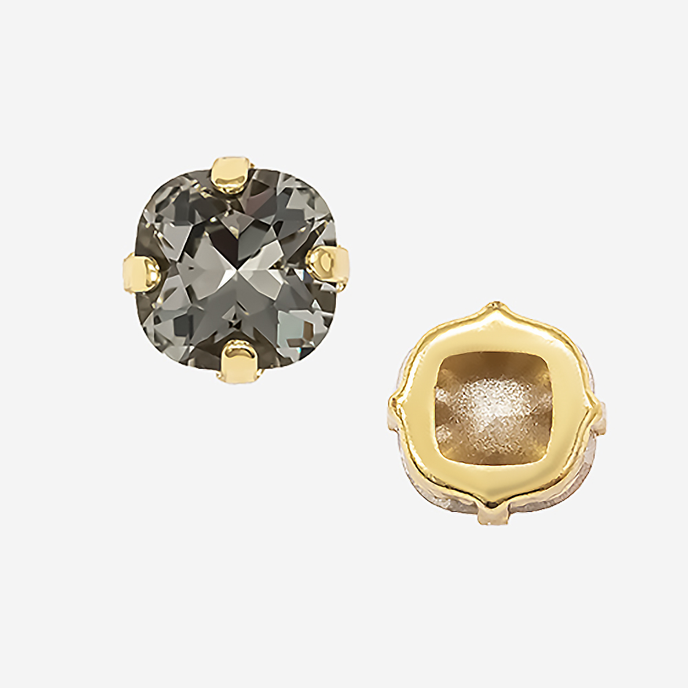 Кристалл Кушон (Сushion) в цапах, оттенок "Черный Бриллиант"/"Black Diamond", 9,2мм, позолота