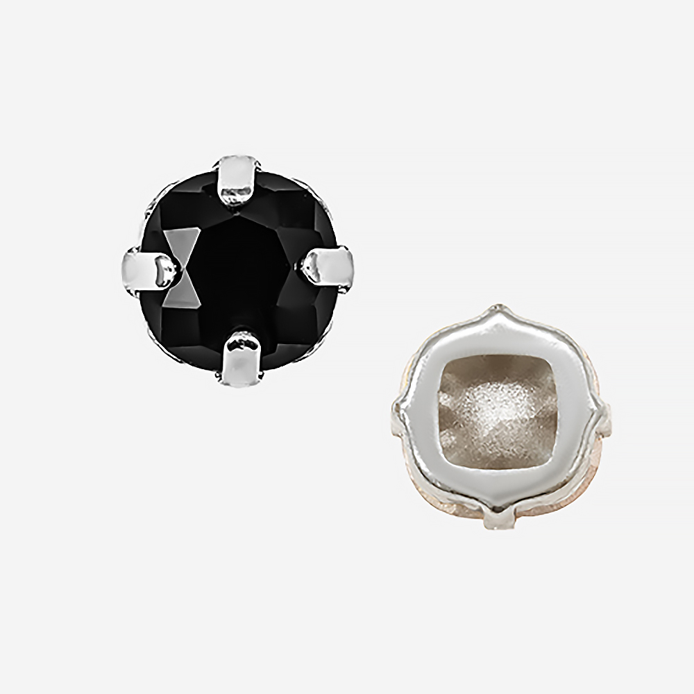 Кристалл Кушон (Сushion) в цапах, оттенок "Черный"/"Jet", 9,2мм, родирование