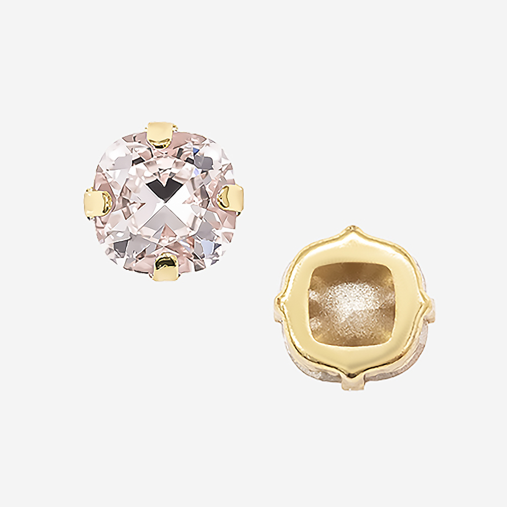 Кристалл Кушон (Сushion) в цапах, оттенок "Светло-розовый"/"Light Rose", 9,2мм, позолота