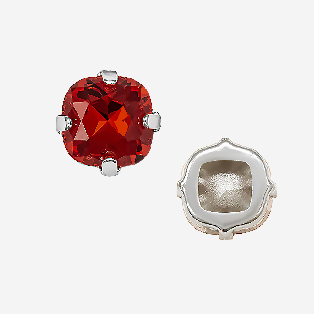 Кристалл Кушон (Сushion) в цапах, оттенок "Светлый Сиам"/"Light Siam", 9,2мм, родирование