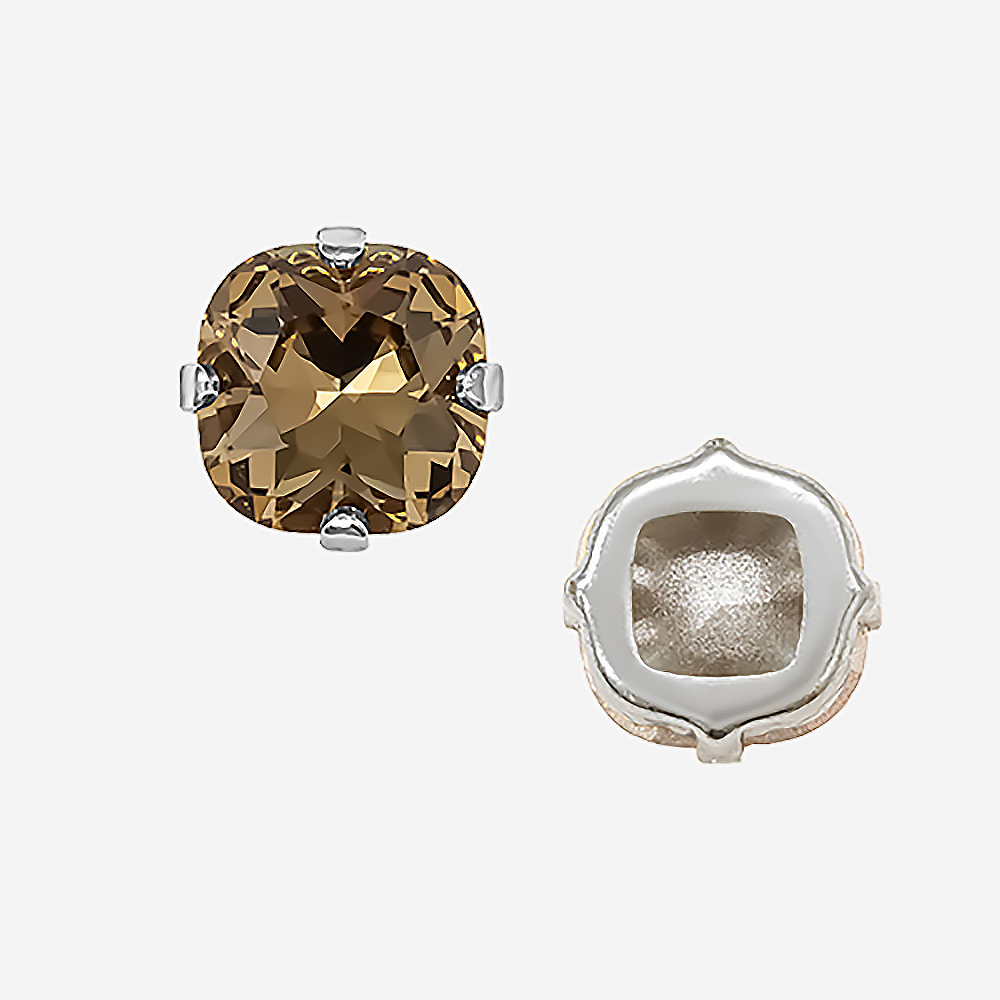 Кристалл Кушон (Сushion) в цапах, оттенок "Светло-дымчатый Топаз"/"Light Smoked Topaz", 9,2мм, родирование