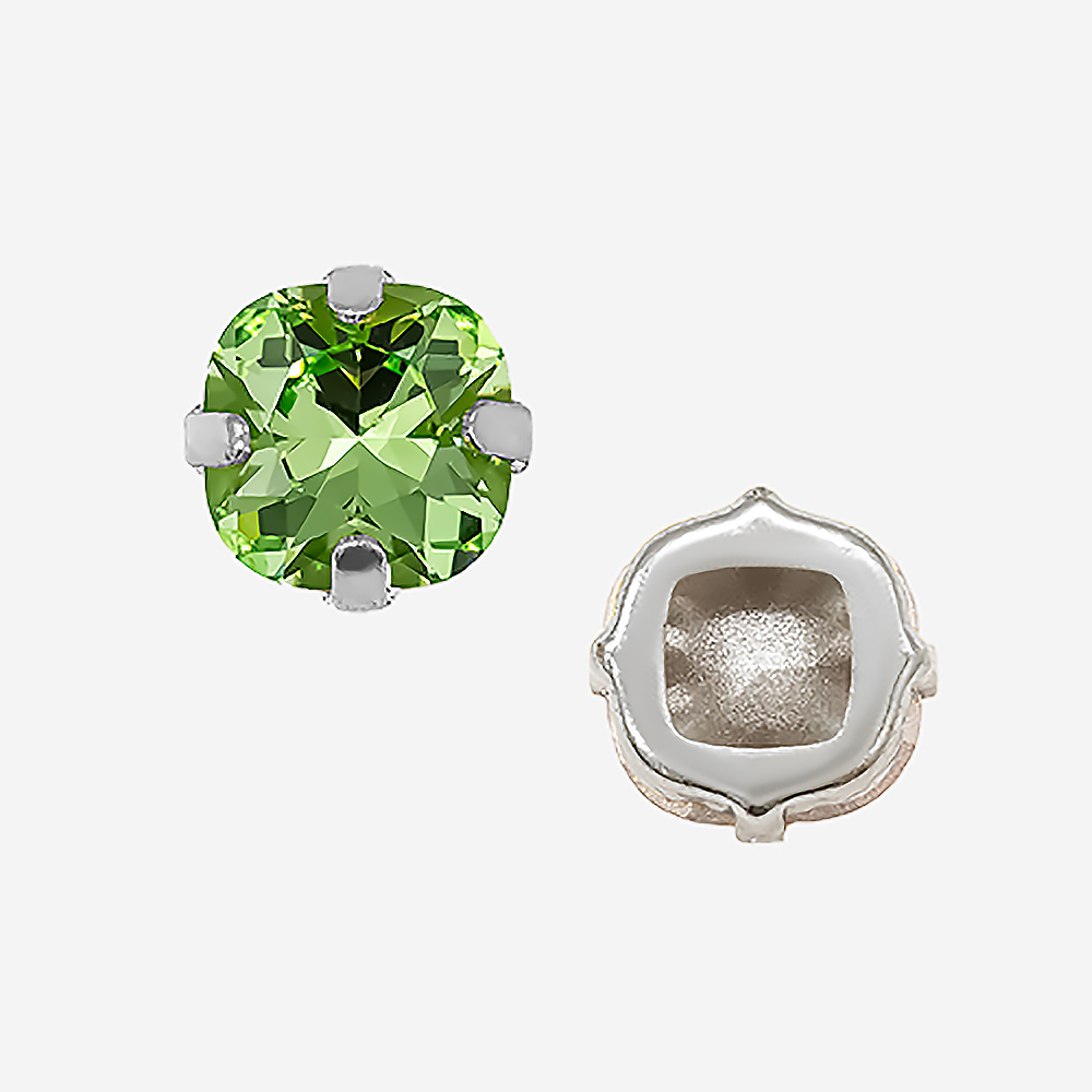 Кристалл Кушон (Сushion) в цапах, оттенок "Перидот"/"Peridot", 9,2мм, родирование