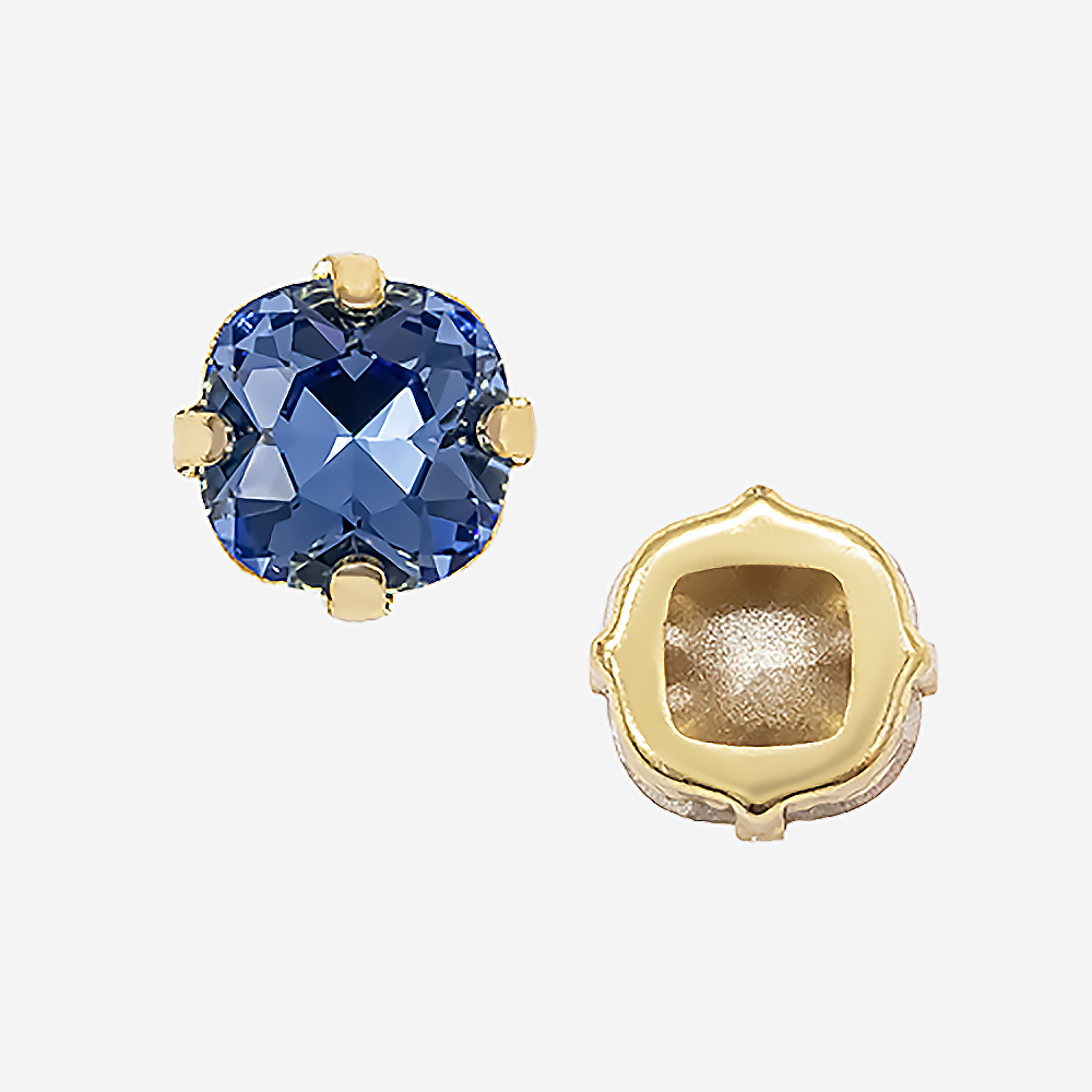 Кристалл Кушон (Сushion) в цапах, оттенок "Сапфир"/"Sapphire", 9,2мм, позолота