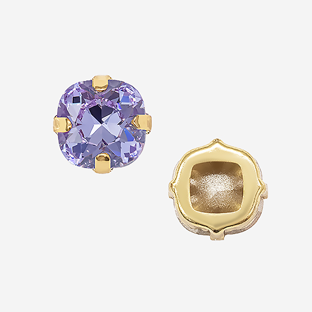 Кристалл Кушон (Сushion) в цапах, оттенок "Фиолетовый"/"Violet", 9,2мм, позолота