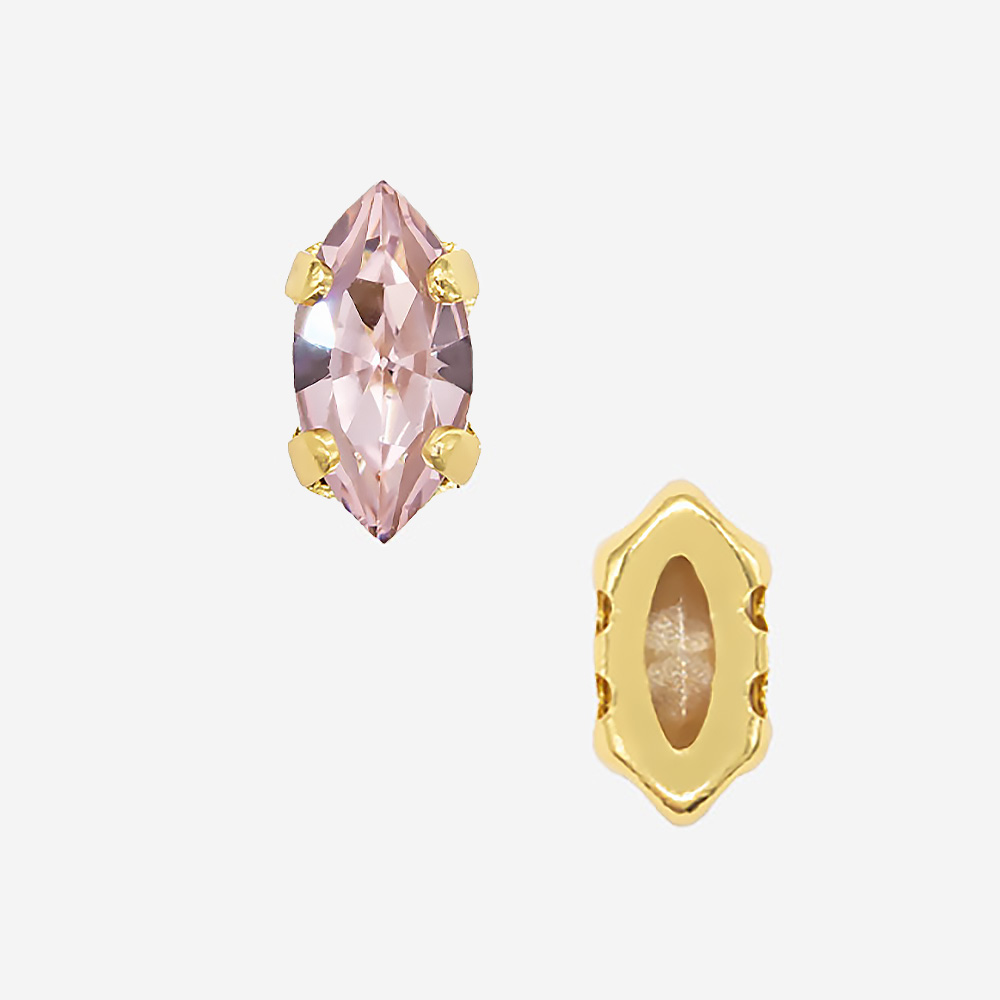 Кристалл Маркиз (Marquise Fancy Stone) в цапах, оттенок "Розовый"/"Rose", 6*3мм, позолота