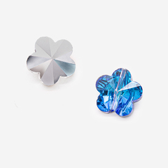 Кристалл с гранями из стекла розового цвета с желто-оранжевым отливом, размер 13мм, продольное отверстие.