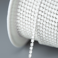Матовая стразовая цепь, 2мм, мятный кристалл в зеленых цапах