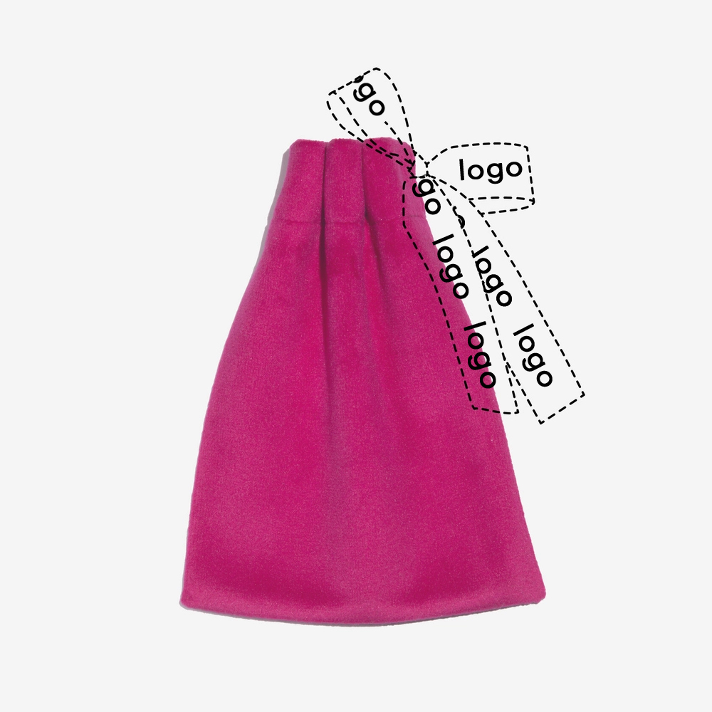 Мешочек из велюра в оттенке "Фуксия", украшенный лентой, на которую мы можем нанести Ваш логотип или любую надпись.