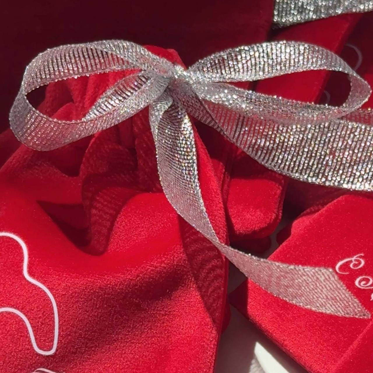 Мешочек из мягкого и нежного велюра с серебристой лентой.