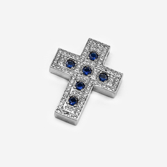 Подвеска "Крестик", синие фианиты, позолота, 28*22мм