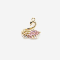 Подвеска "Лебедь", фианиты, розовое ювелирное стекло, 16,2*14,3мм, родирование.