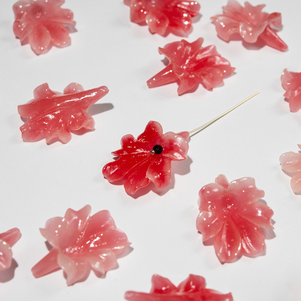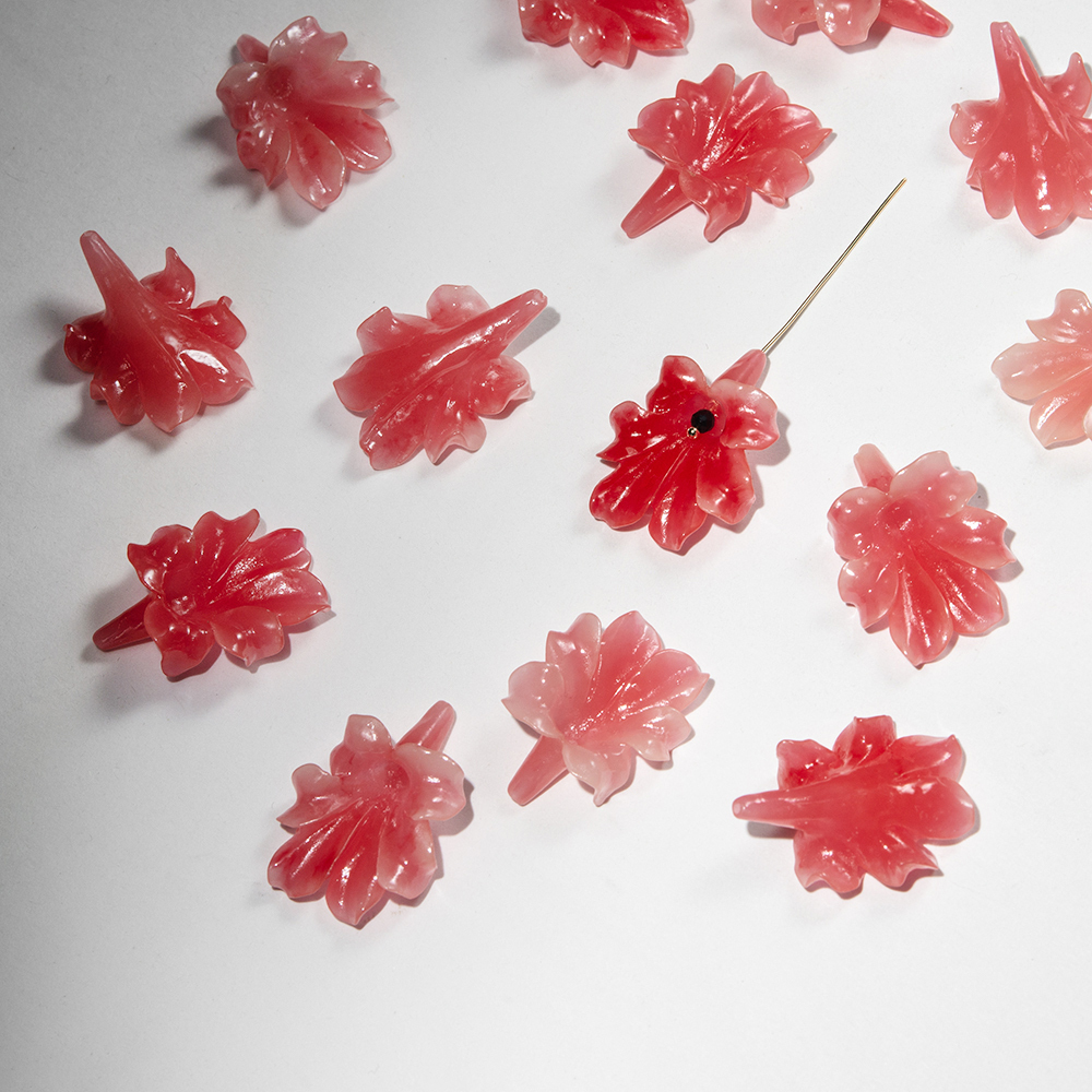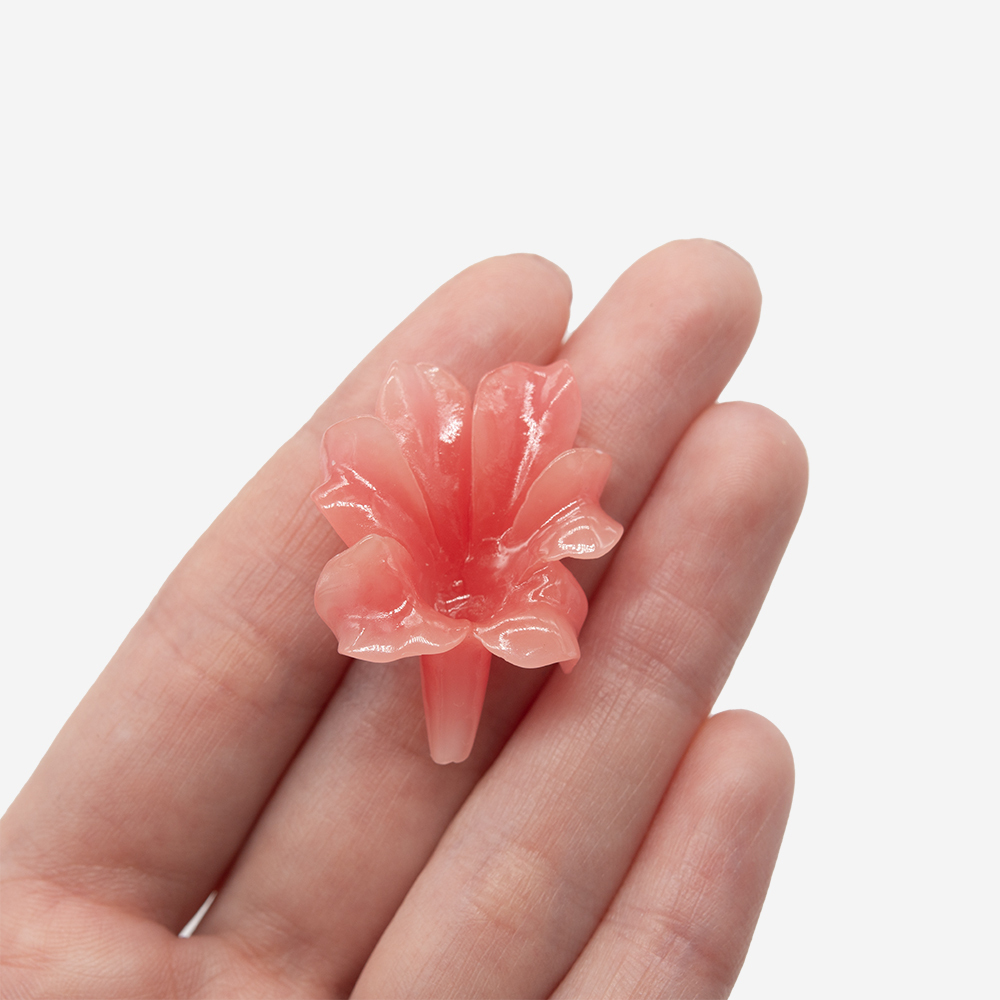 Подвеска в форме лилии, нежного кораллово-розового оттенка, изготовлена из коралловой пудры, отверстие 1,5мм.