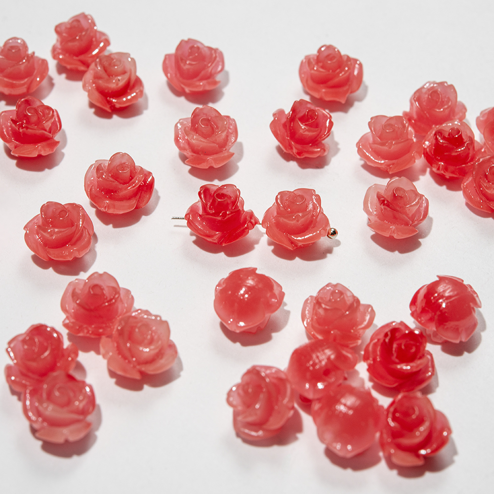 Подвеска резная "Роза", 8,5*10мм, поперечное отверстие, коралловая пудра