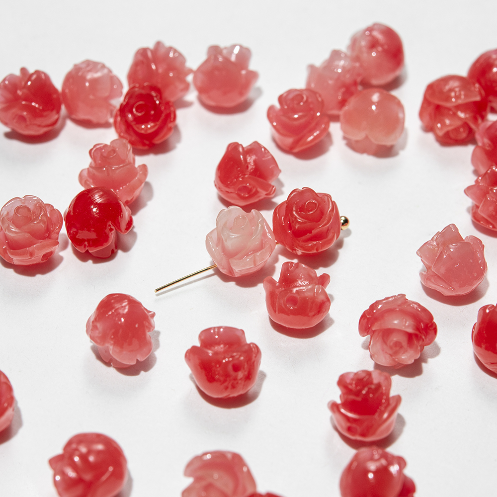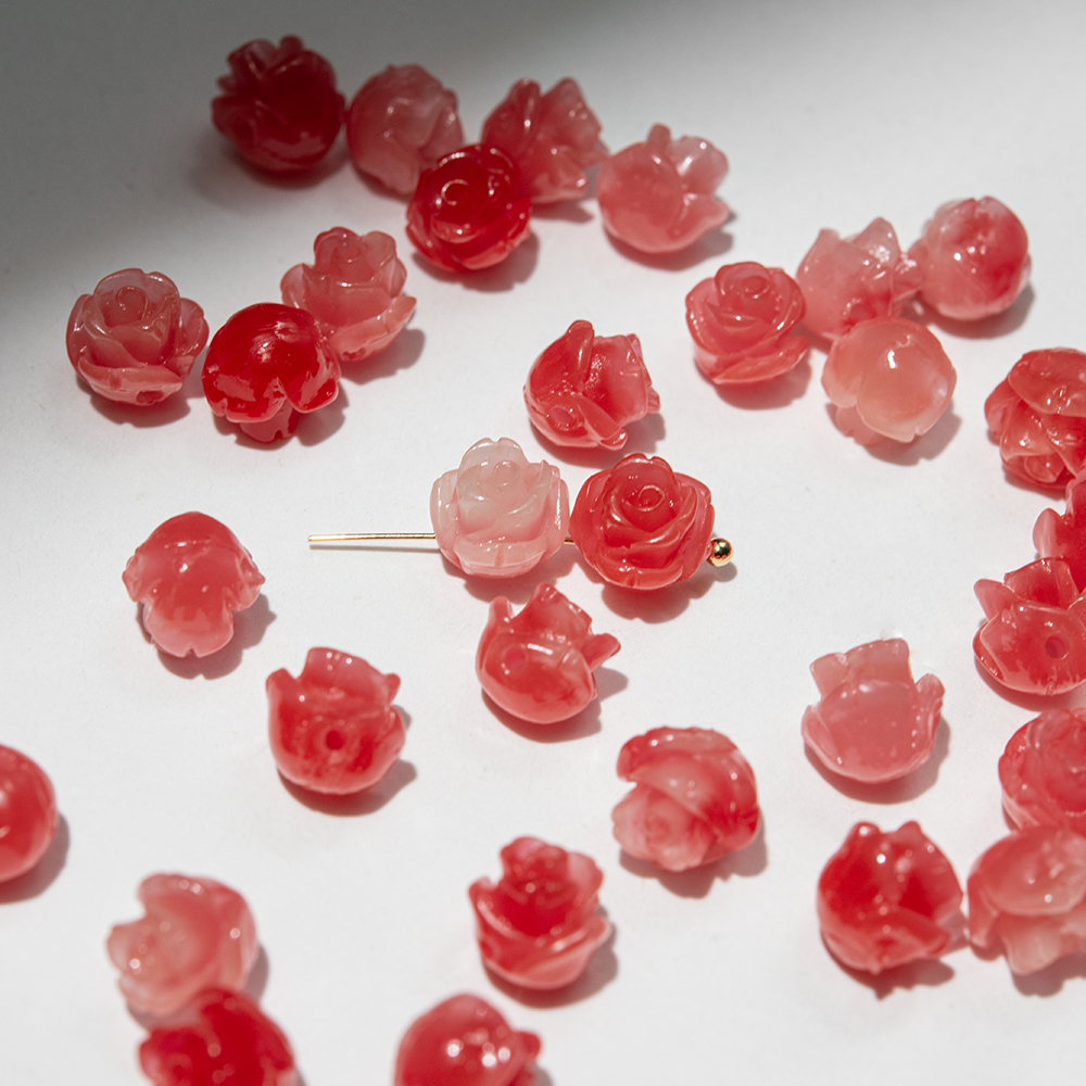 Подвеска резная "Роза", 8,5мм, поперечное отверстие, коралловая пудра