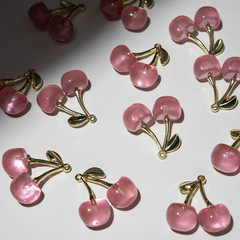Подвеска "Розовые вишенки", 31*29мм, родирование, акрил