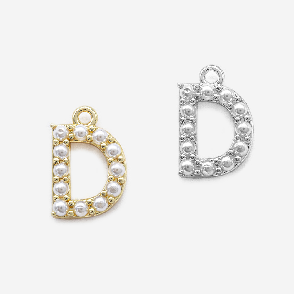Подвеска в форме латинской буквы "D", инкрустирована искусственными жемчужинами, размер подвески 13,7*9мм (размер указан вместе с колечком).