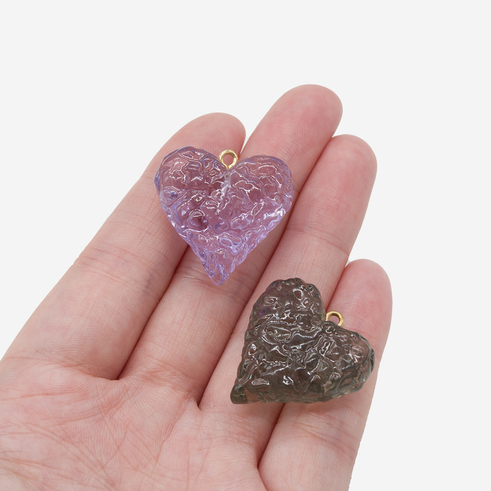 Подвеска в форме рельефного сердца с бейлом, 26,6*25,5мм, дымчатый акрил.