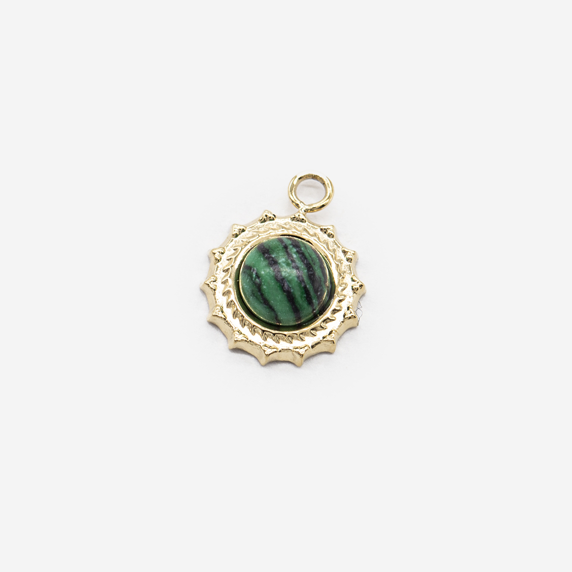 Подвеска из стали, 11(вместе с колечком)*8,4мм вставка из малахита (имитация), сталь, позолота. Высококачественное исполнение.