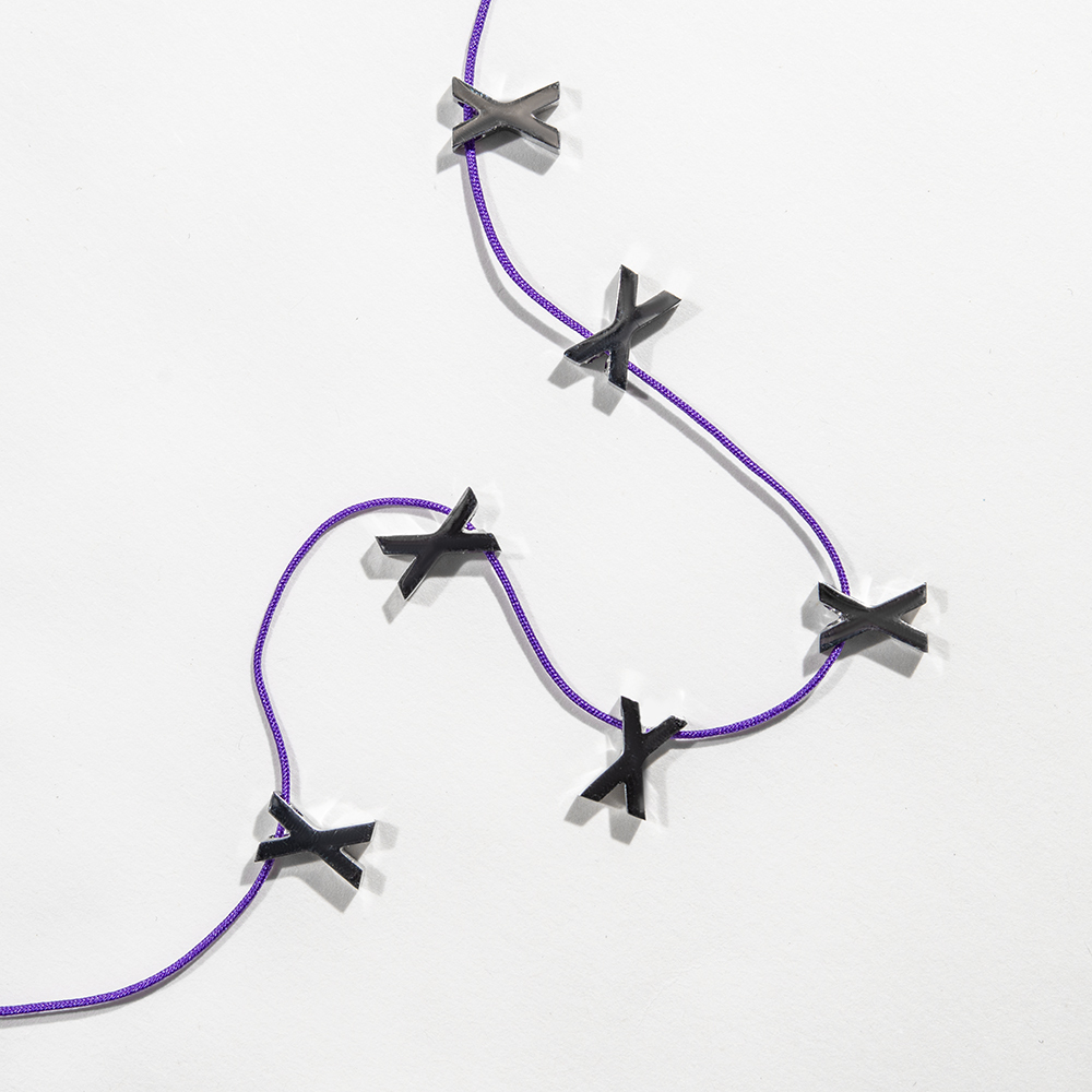 Подвеска из стали в форме буквы "X". Отверстие 1,5 мм.