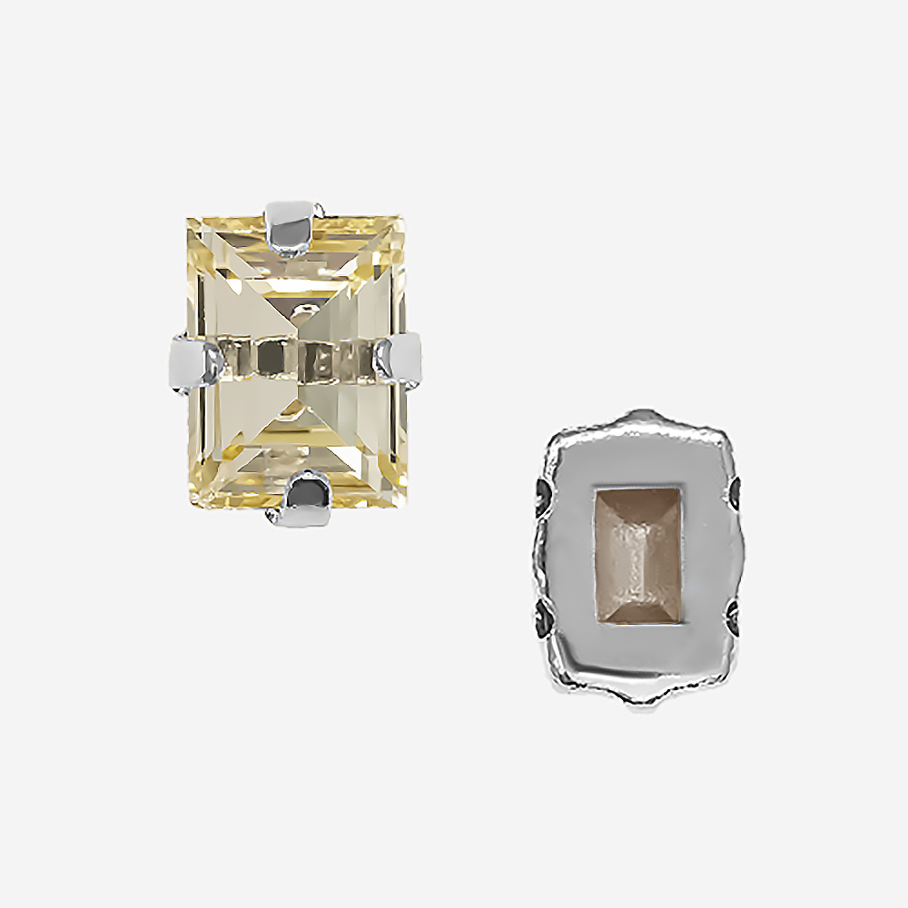 Кристалл Прямоугольник (Step Cut Fancy Stone) в цапах, оттенок "Лимонад"/"Jonquel", 9*7мм, родирование