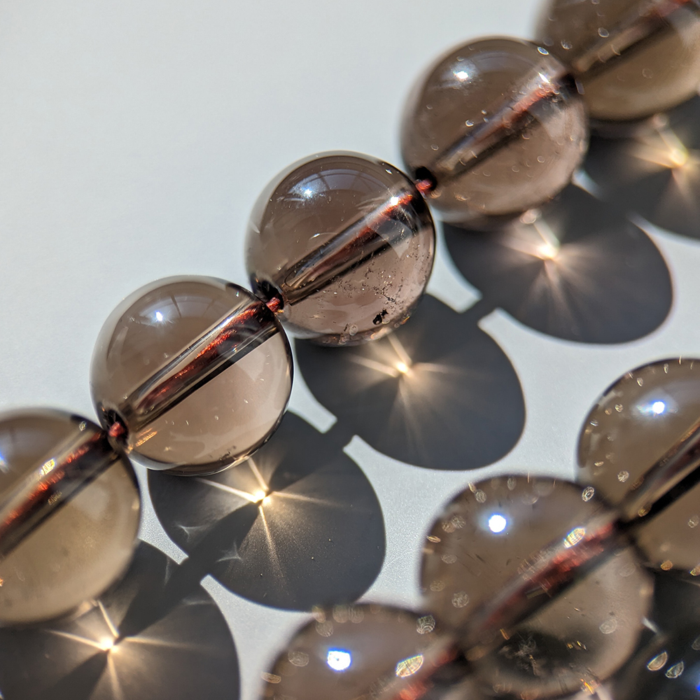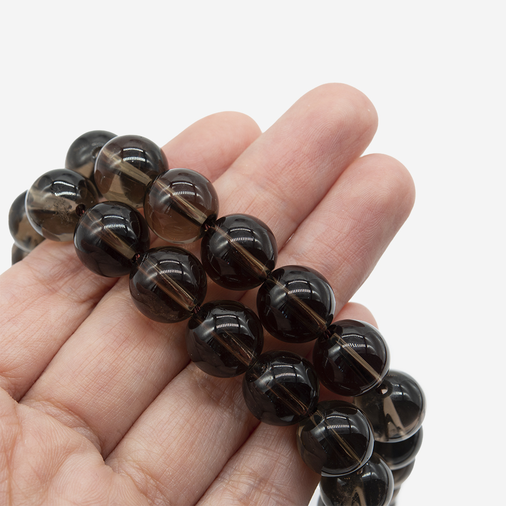 Бусины из натурального дымчатого кварца. Камень природный, возможно наличие включений минералов другого оттенка, неровностей на поверхности бусин.