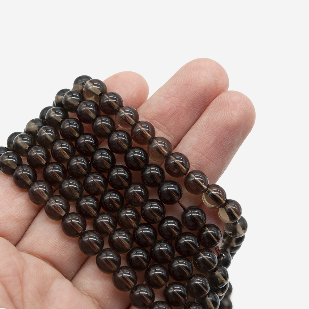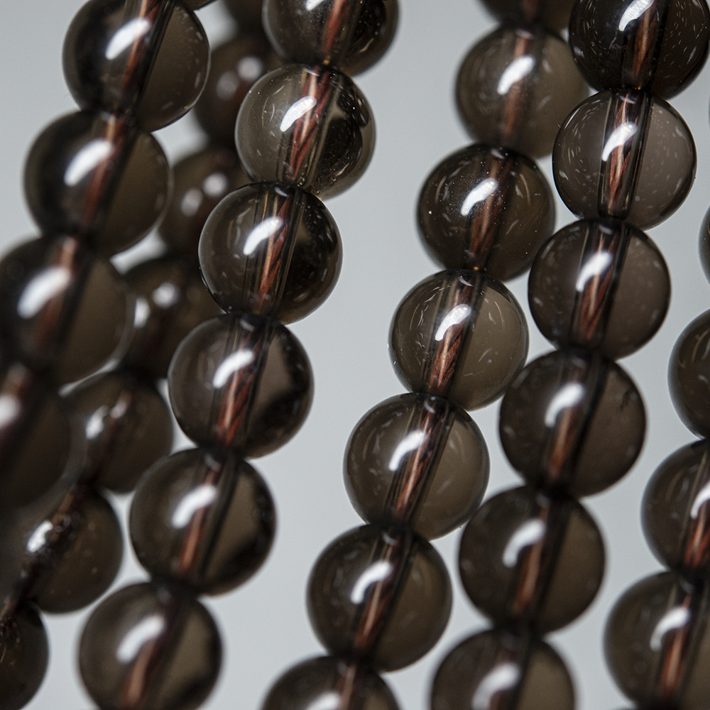 Бусины из натурального дымчатого кварца. Камень природный, возможно наличие включений минералов другого оттенка, неровностей на поверхности бусин.