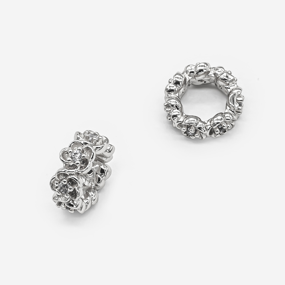 Разделитель с цветочками 10*4,2мм, фианиты, родирование