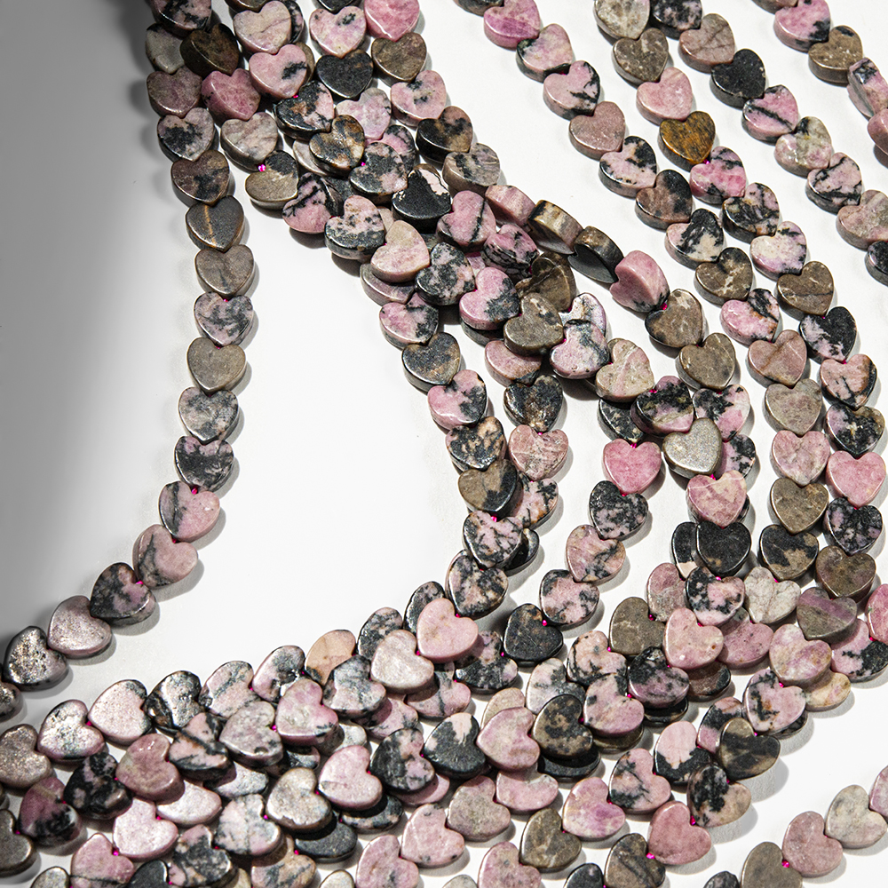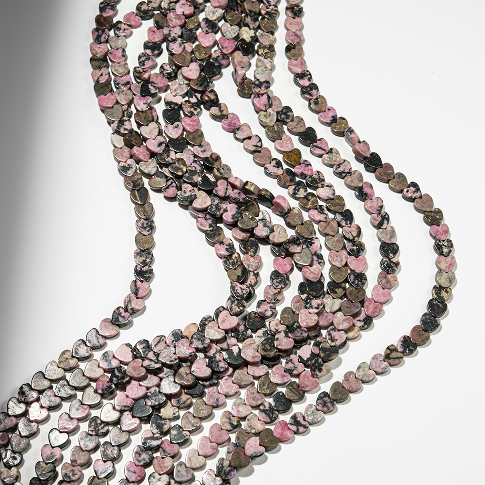 Родонит натуральный, мини-сердечки, 6,3мм