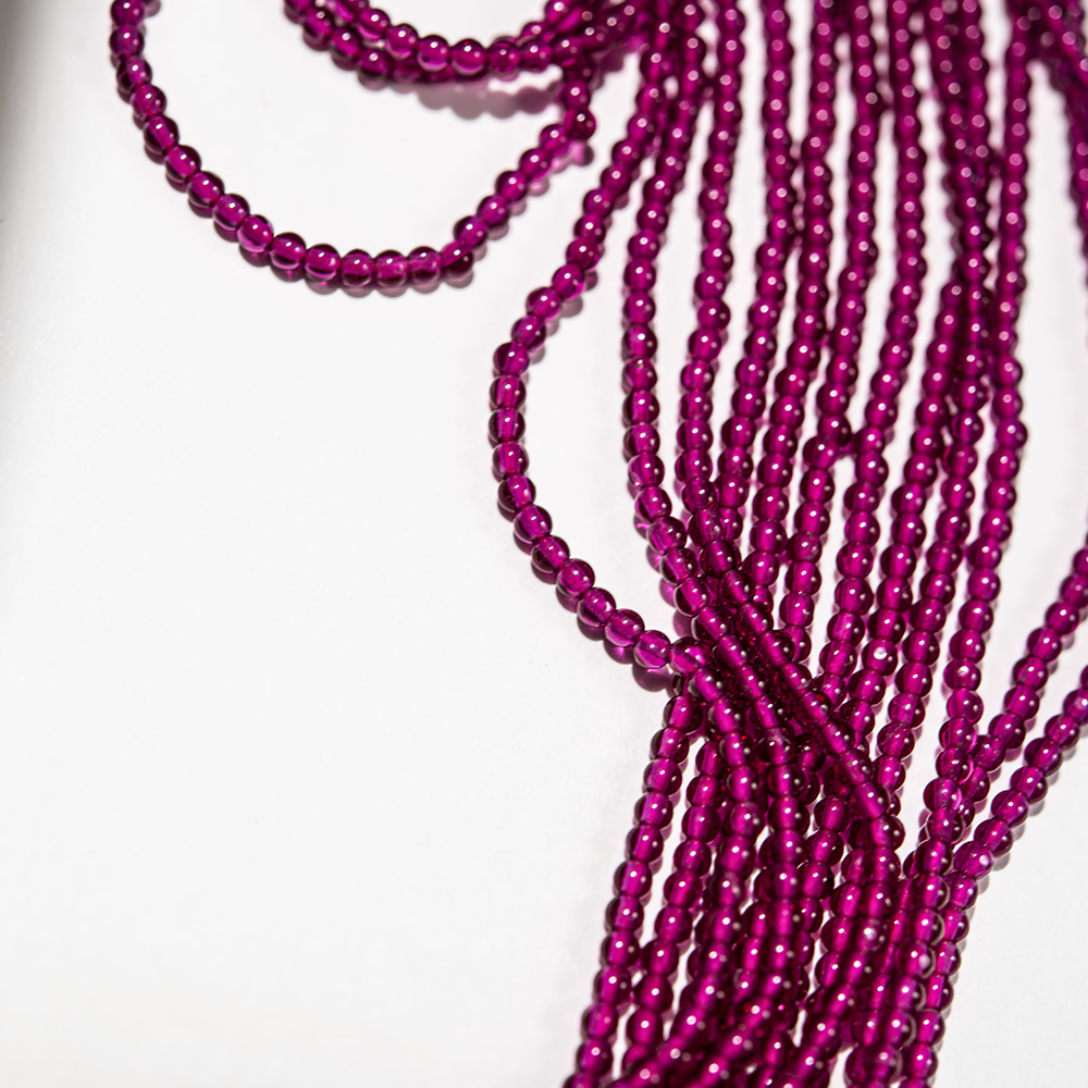 Бусины полупрозрачного ярко-розового цвета из наношпинели - синтетического ювелирного камня, одного из вариантов ситаллов.