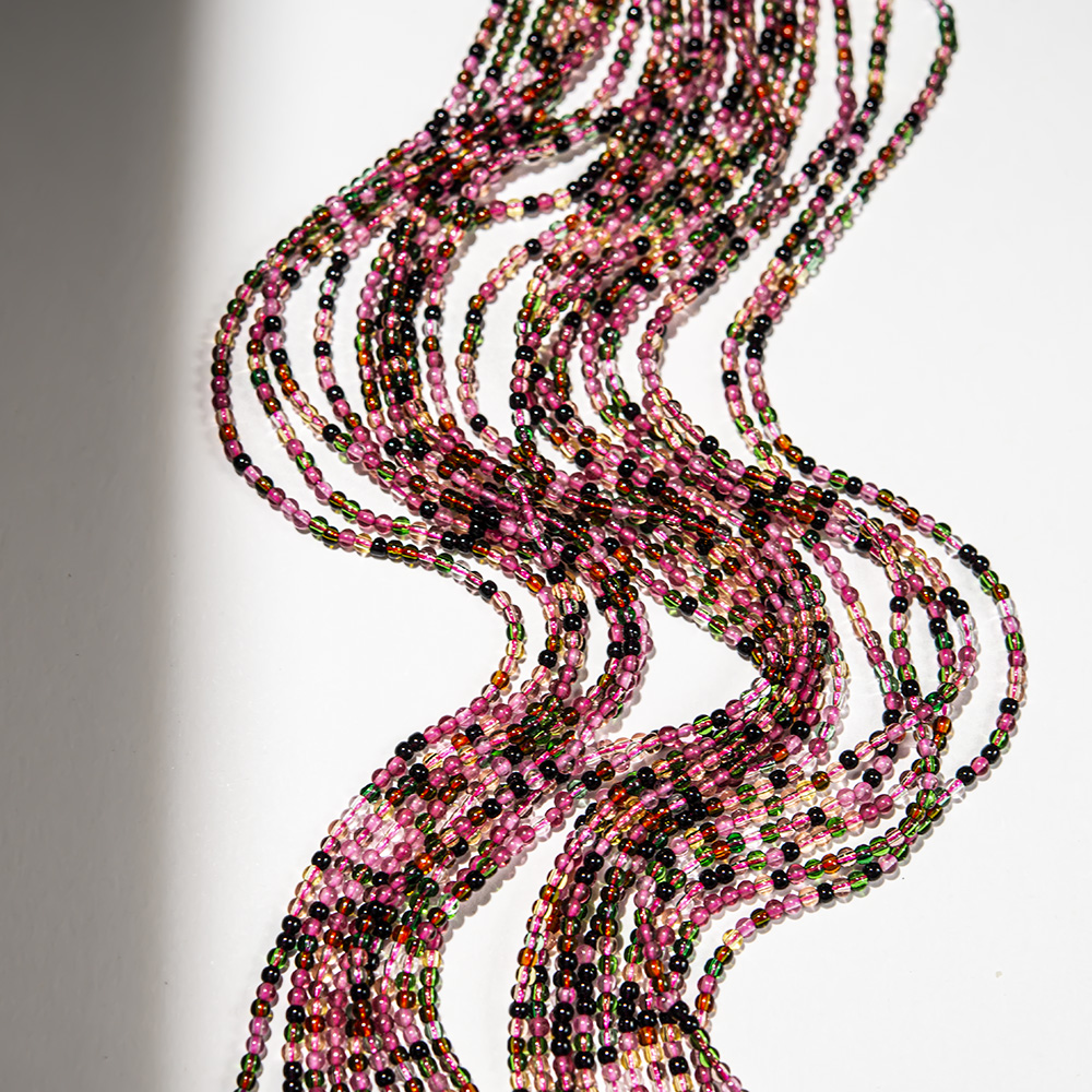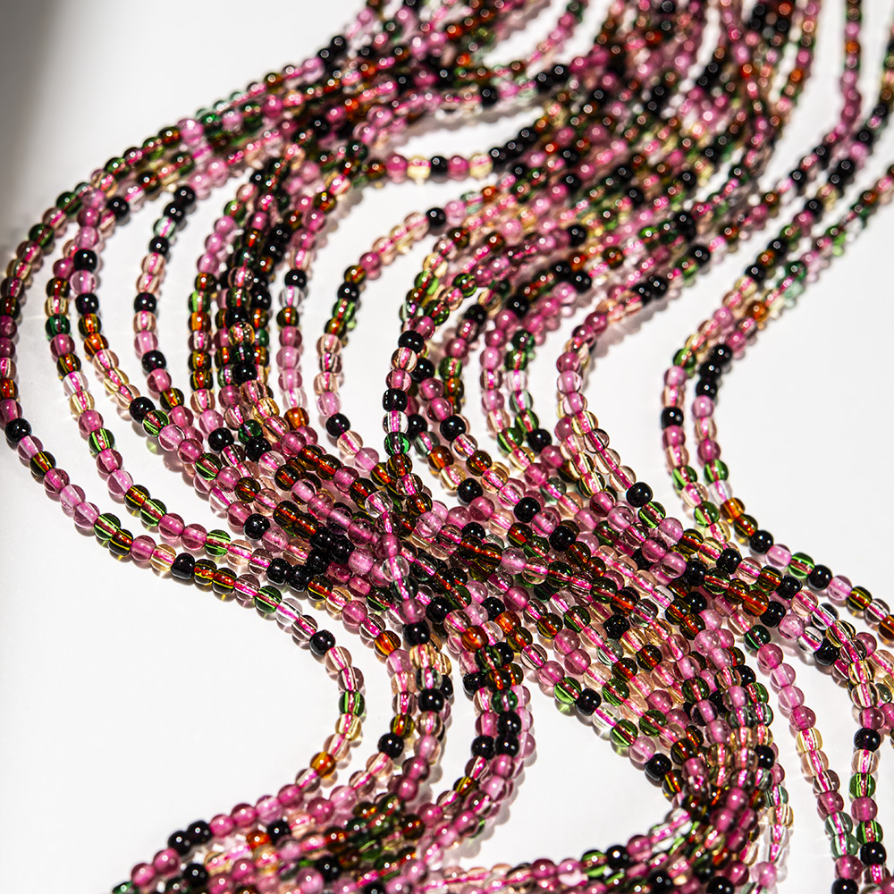 Бусины полупрозрачного розового, желтого, зеленого и черного цвета из наношпинели - синтетического ювелирного камня, одного из вариантов ситаллов.