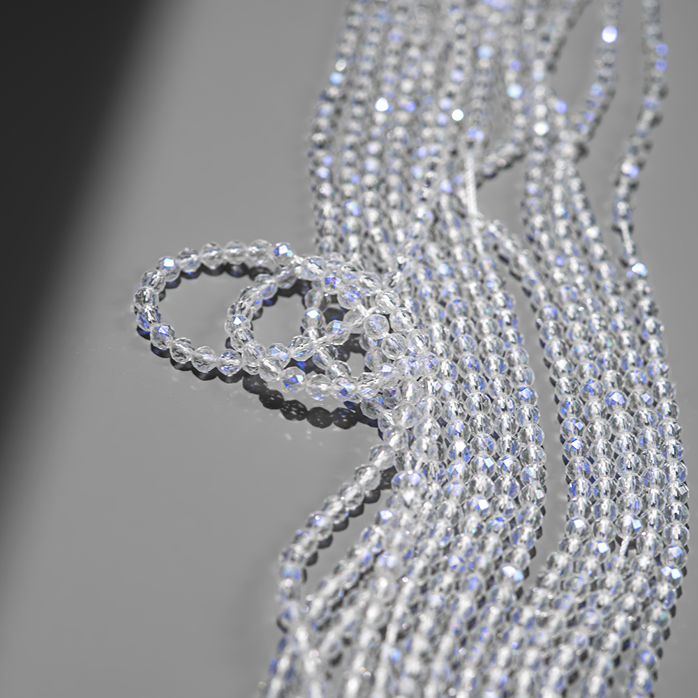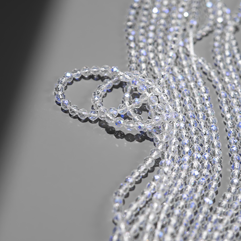 Прозрачные бусины из наношпинели - синтетического ювелирного камня, одного из вариантов ситаллов, с напылением, которое схоже с блеском лунного камня.