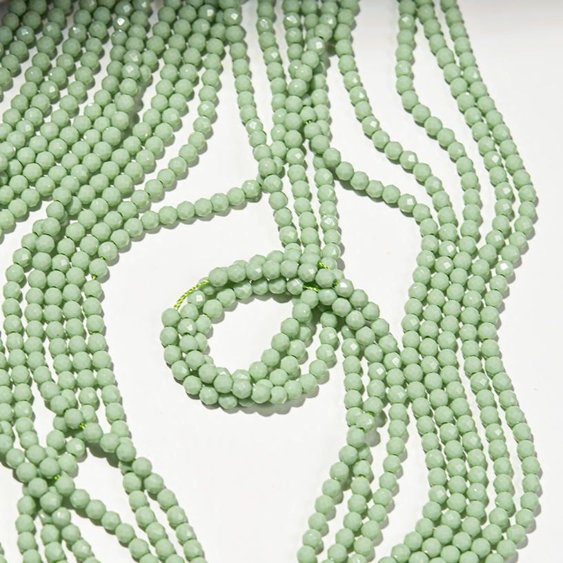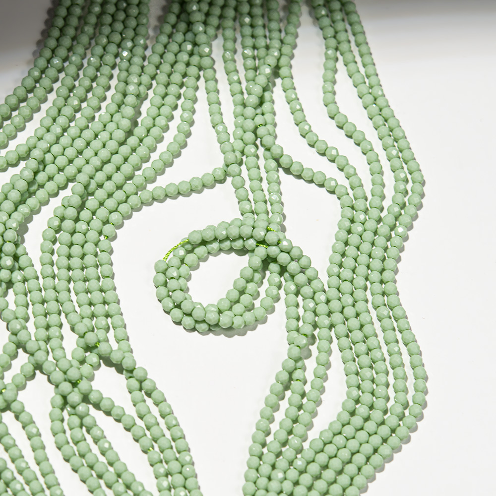 Бусины зеленого цвета из наношпинели - синтетического ювелирного камня, одного из вариантов ситаллов.