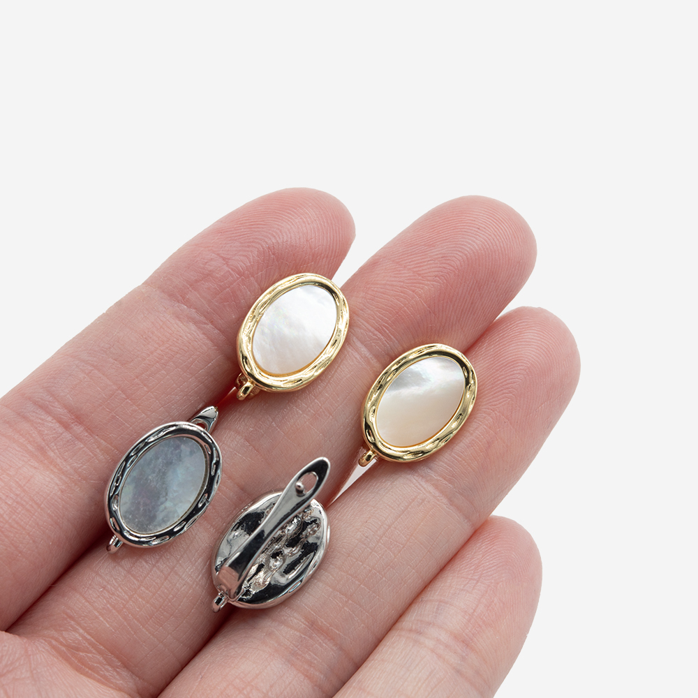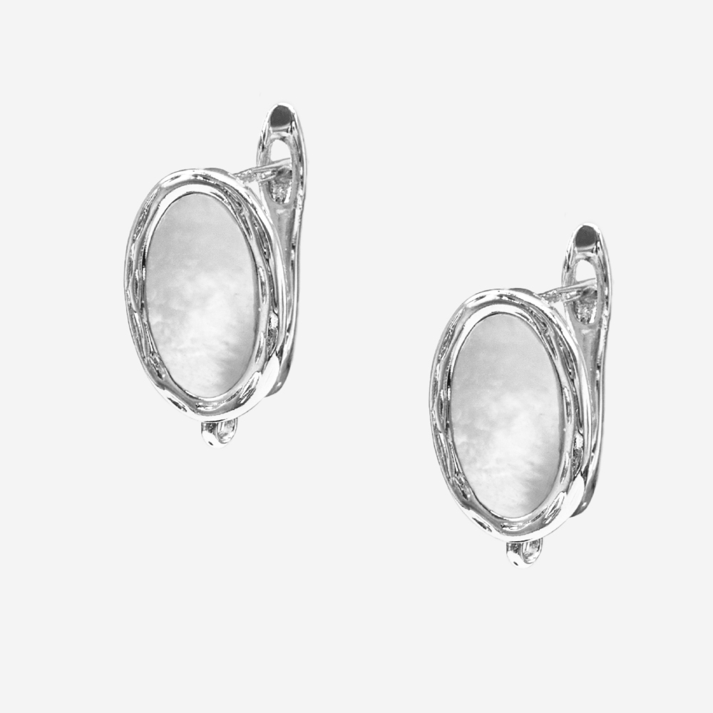Швензы "Севилья" с натуральным перламутром 14*10мм, родирование